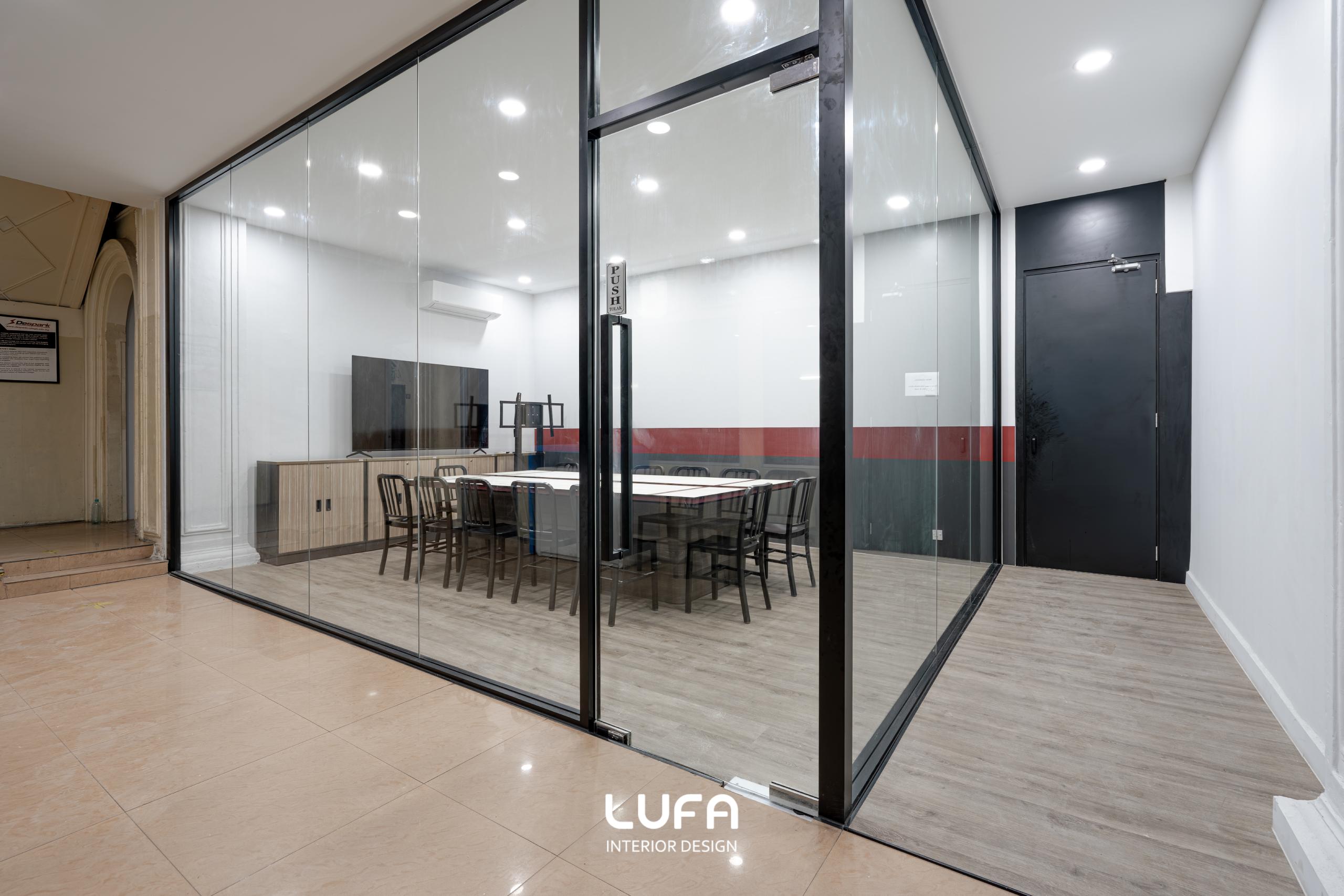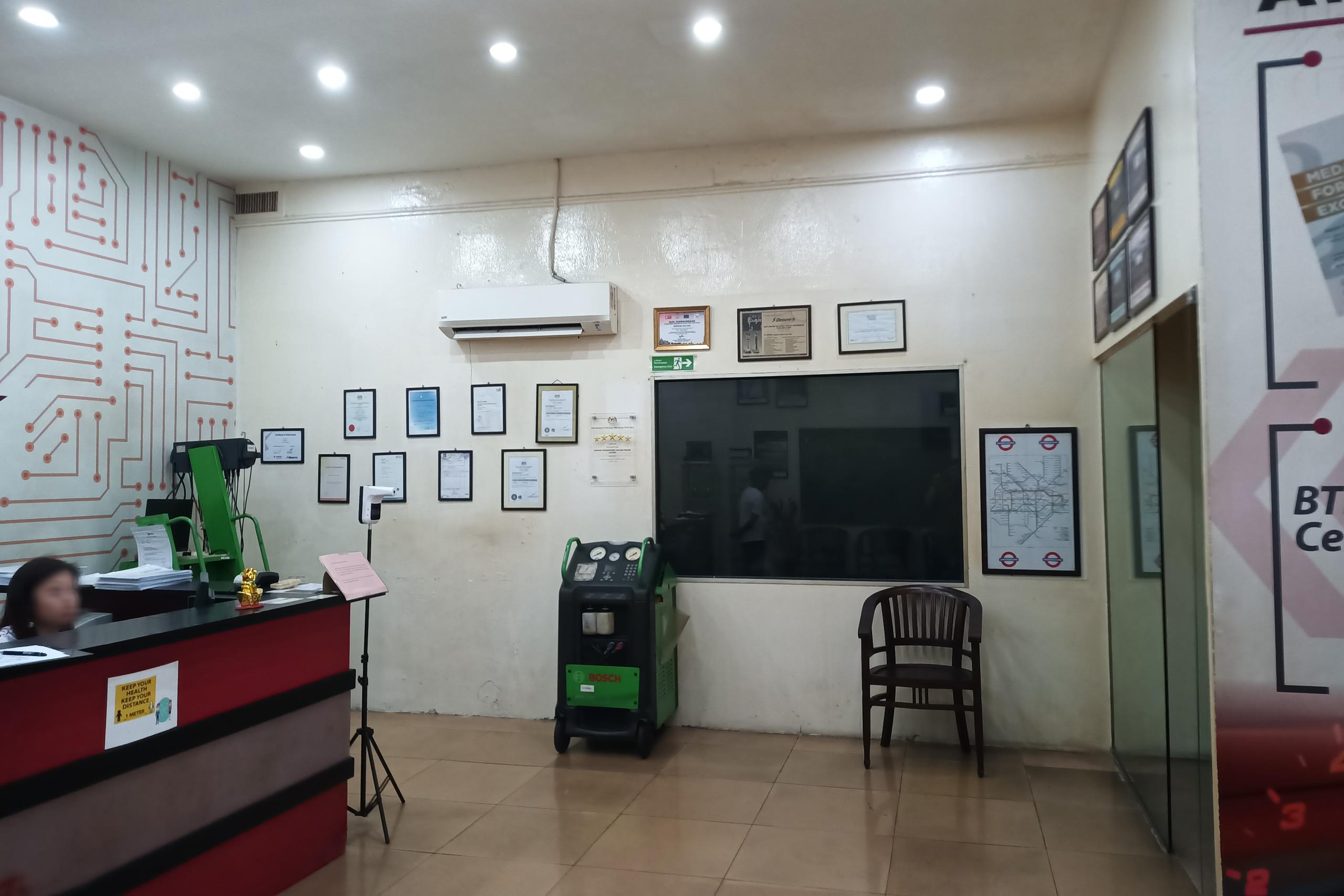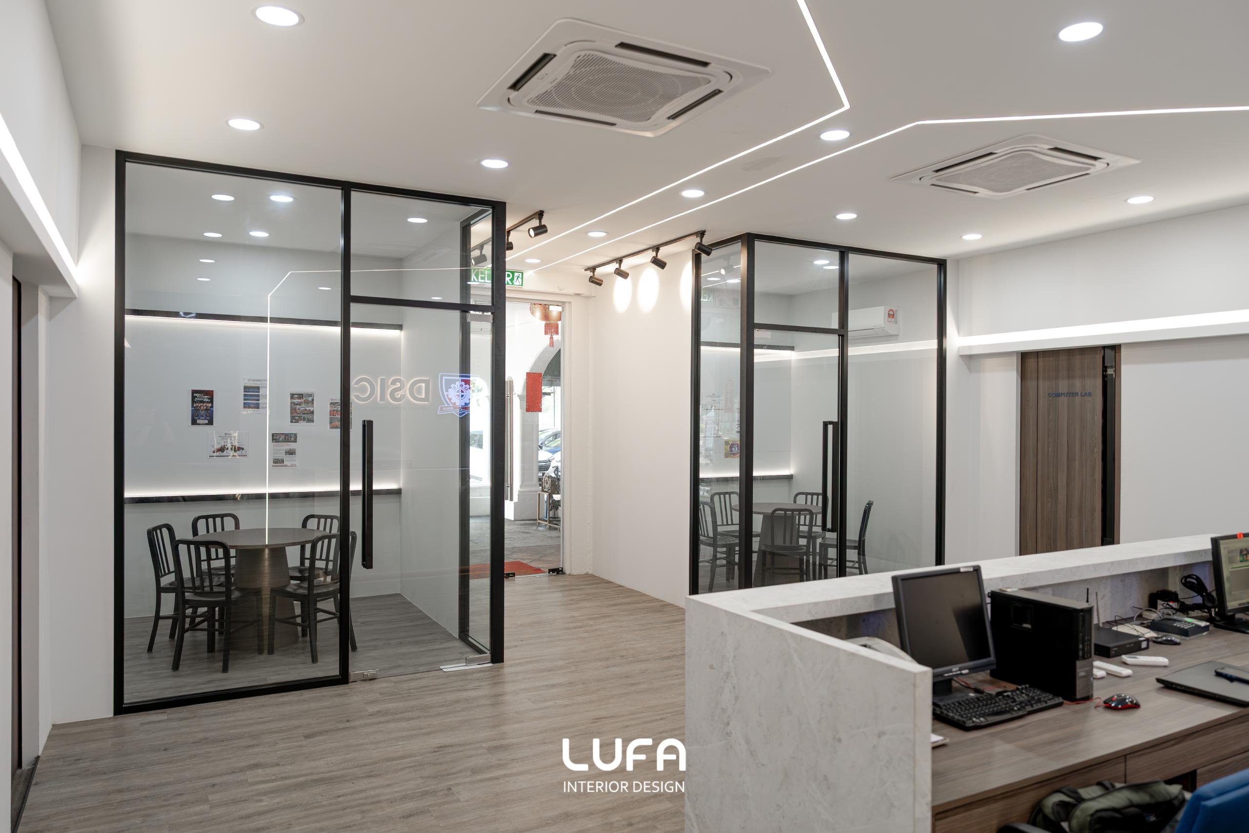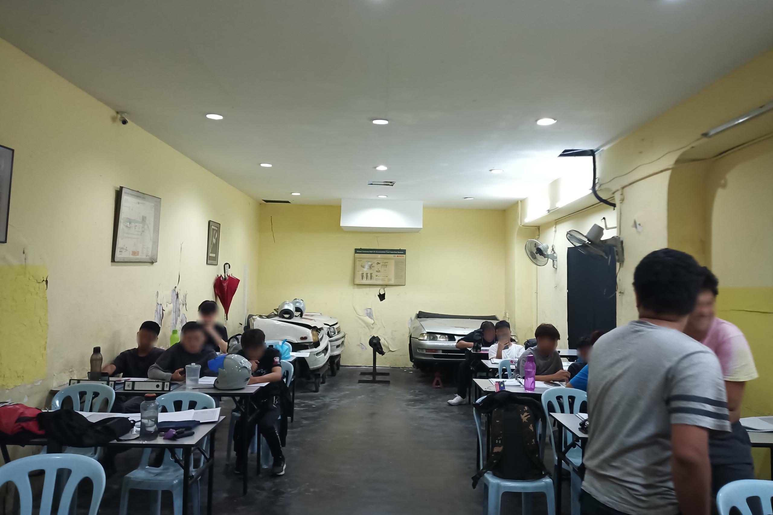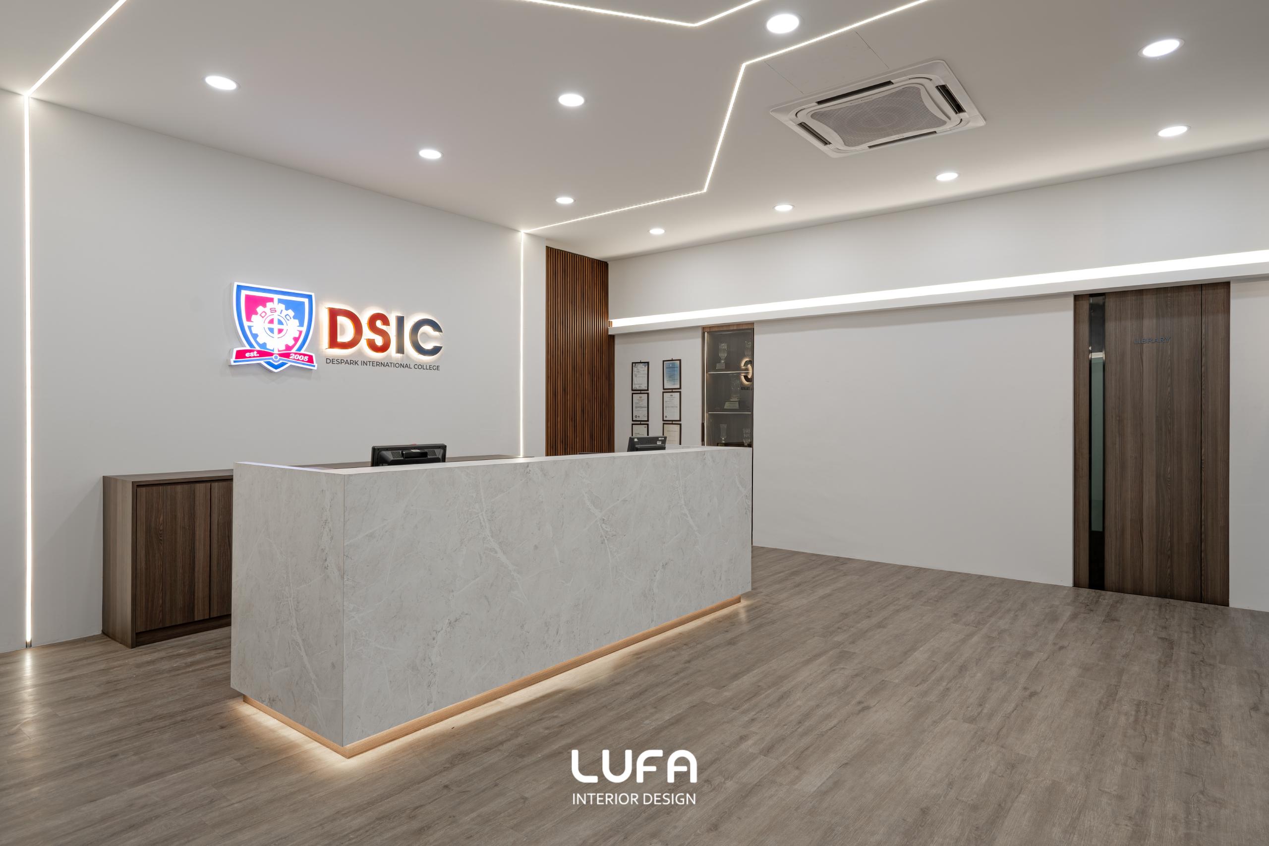 Before: The original site was cluttered and dimly lit, characterized by mismatched furniture, exposed conduit, and a lack of cohesive branding. The space felt more like a back-office workshop than a premier international college.